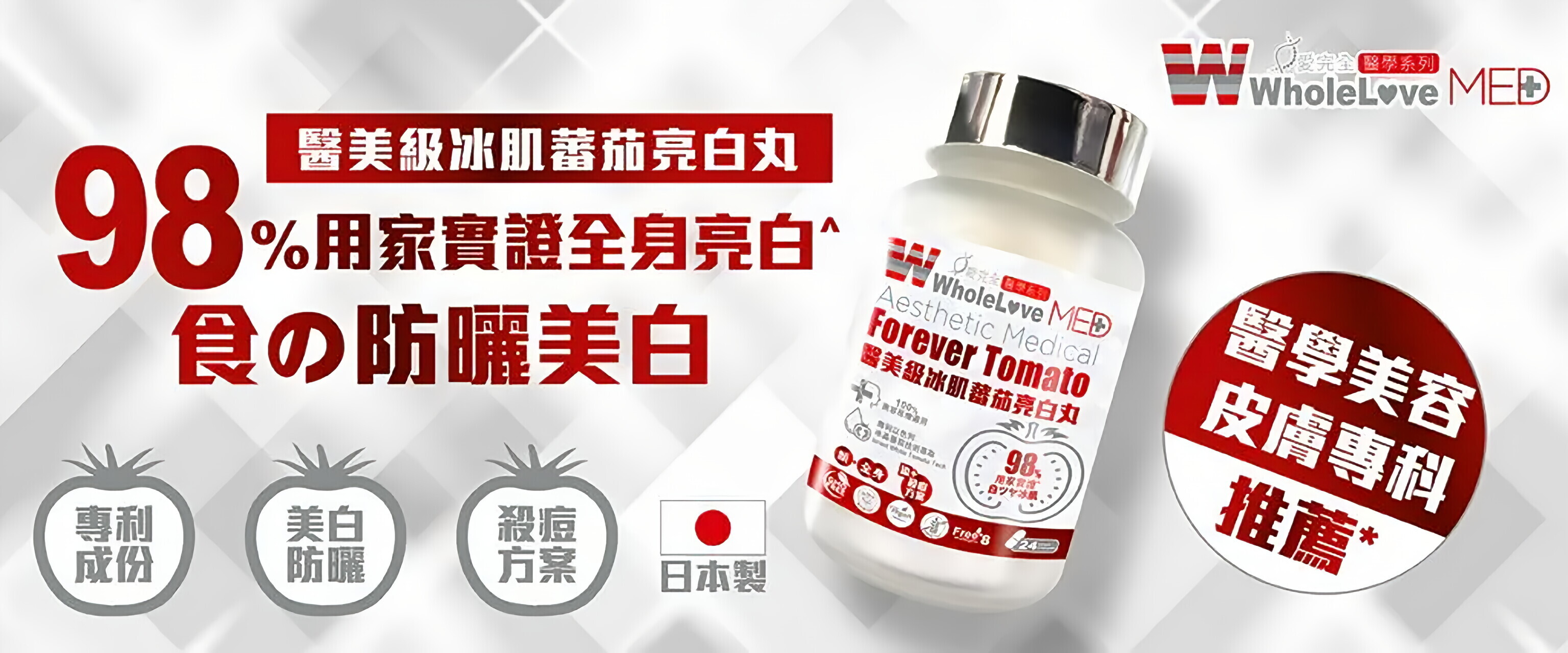 每天對鏡暗沉蠟黃?外擦美白停用即反黑?WholeLove Plus醫美級冰肌蕃茄亮白丸,以L-半胱氨酸+專利茄紅素科學複方,從內阻黑、抗UV,解鎖持久水光肌!